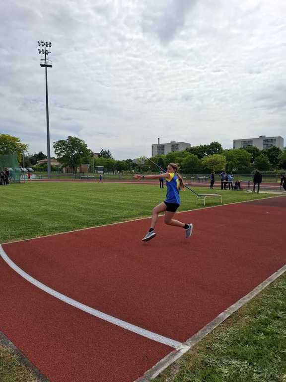 sont illustrés par leurs performances individuelles comme Faustine en hauteur avec 1.44m (30 points) et Étienne qui a battu son record au marteau avec avec 38.59m (30 points).