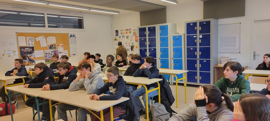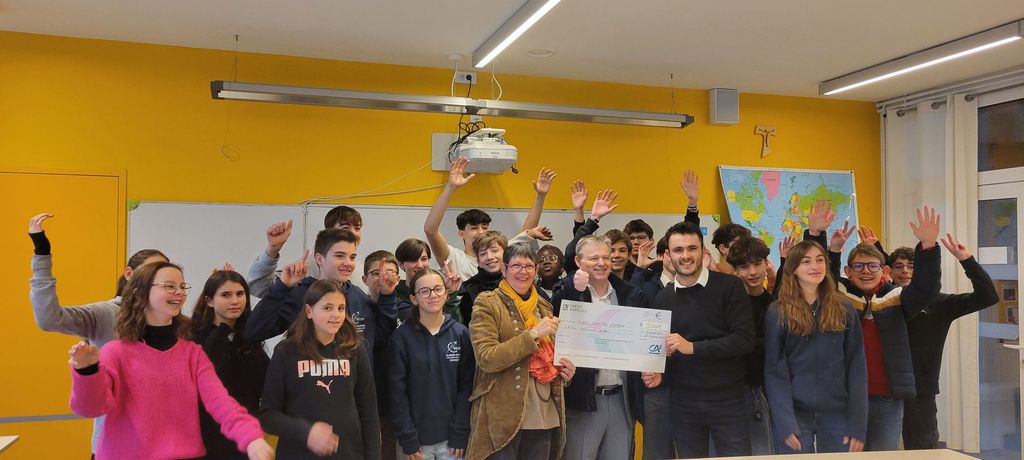 Jeudi 23 janvier, les élèves de la Classe Défense ont reçu les représentants du Crédit Agricole de Surgères, qui sont venus officiellement leur remettre un chèque d'un montant de 500€. Cette démarche fait suite à leur participation à l'opération lancée par la banque pour récolter des fonds pour des projets en lien avec la culture, le sport, le milieu associatif. Les élèves ont passé un samedi matin de novembre 2024 à pédaler (1€ reversé par la banque pour 1km parcouru), et ont aussi été sur le marché afin de sensibiliser les gens à leur projet de voyage à Paris au mois de mai. Ces fonds vont donc servir à financer une partie du voyage (SURPRISE...).