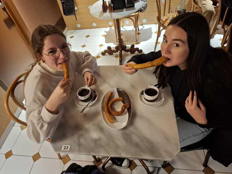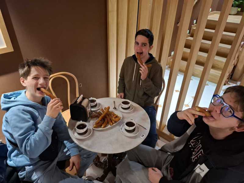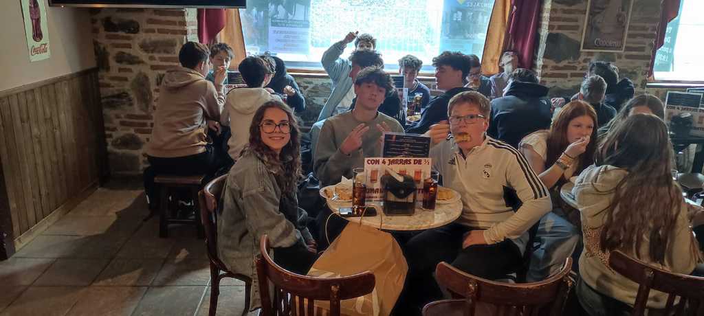 Après une bonne nuit de sommeil, nous nous sommes tous retrouvés pour visiter Salamanca :plaza Major, l'Universidad, La Biblioteca, La cathédrale. Nous sommes (enfin presque tous) montés dans le clocher de la catédrale ou nous avons pu observer la ville. Pour nous reconforter, nous avons dégusté un Chocolate y Churros comme seuls les Espagnols savent faire. Un petit quizz dans la ville pour finir la journée avant de rentrer dans nos familles.