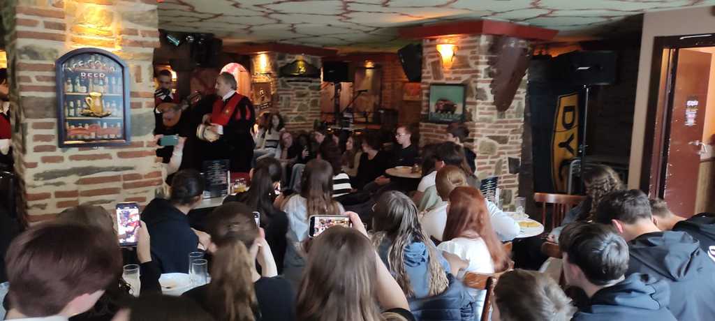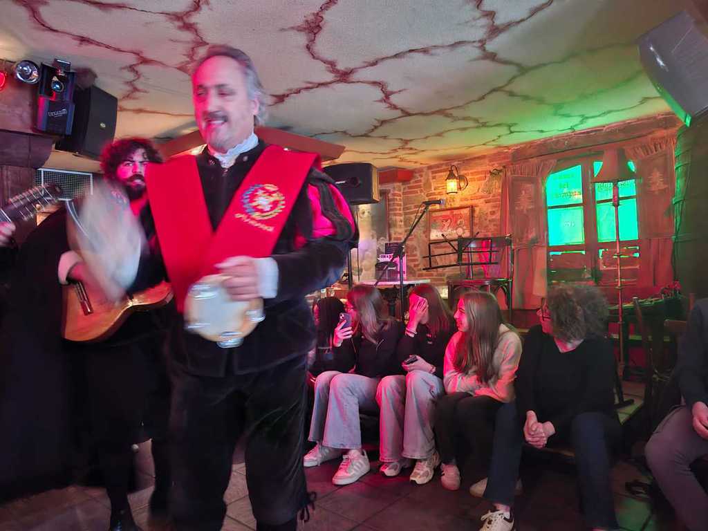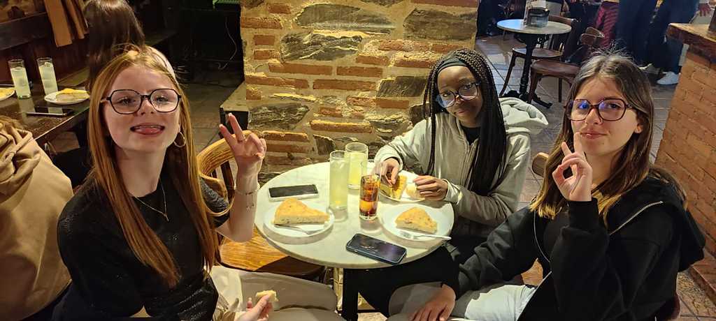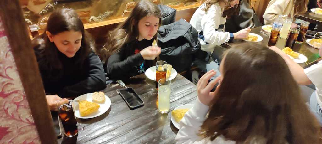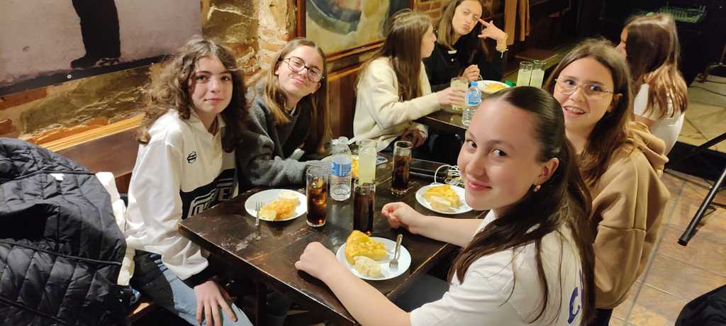 Après la découverte des graffitis dans la ville, nous sommes allés à la rencontre de collègiens espagnols, jeu, partie de foot (nous avons perdu), une très belle rencontre. Après un temps libre, nous avons assisté à un spectacle de Tuna en degustant una tortilla de patatas.