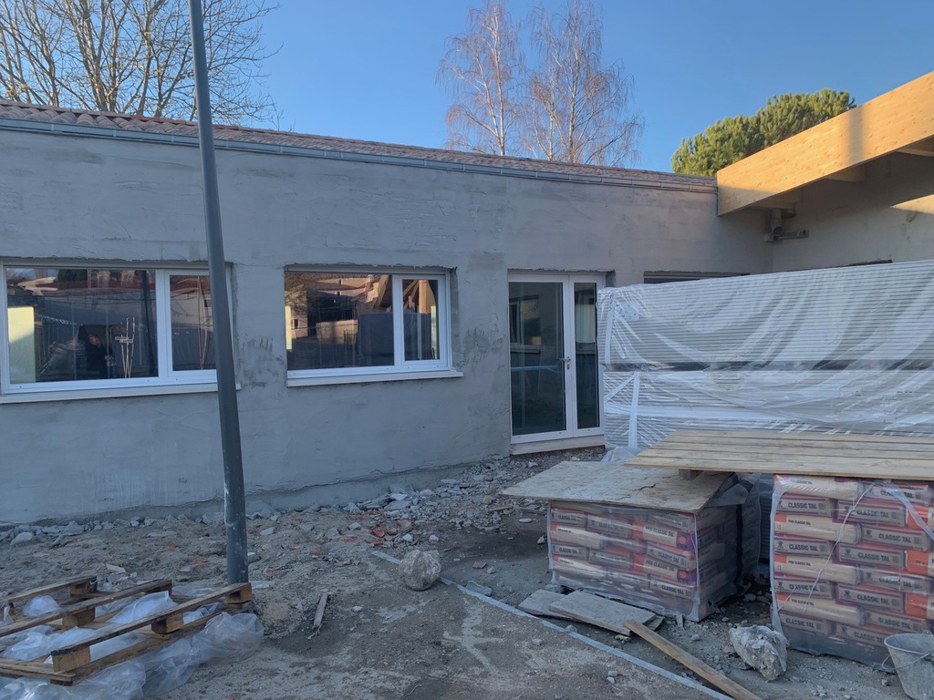 La remise en état de la cour et l'emplacement des nouvelles salle des personnels et vie scolaire suivra.