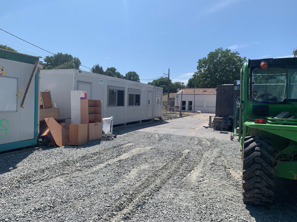 Le démontage et le déplacement des préfabriqués a commencé dès le 25 juin puisque nous avions libéré les élèves à cette fin.